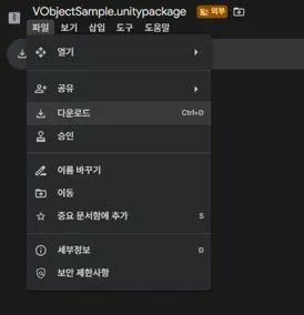 VObjectSample.unitypackage 를 다운로드해 Import 합니다.