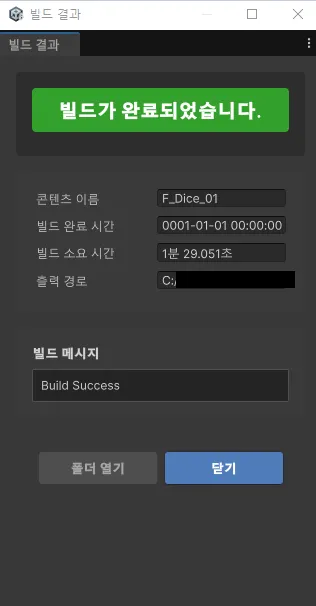 위와 같이 성공 창이 뜨면 VObject가 정상적으로 빌드 완료된 것입니다.