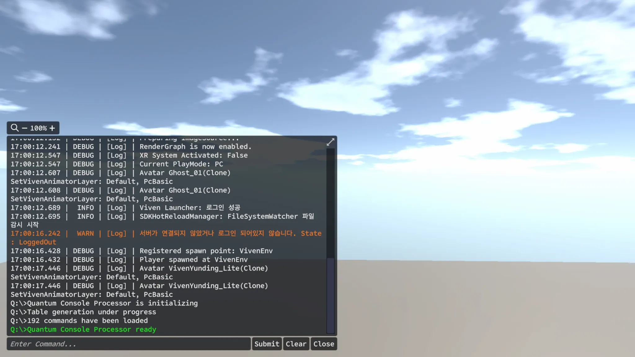 VIVEN을 실행하면 테스트 맵에 입장할 수 있습니다.